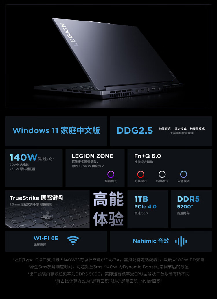 联想(Lenovo)拯救者Y7000P 游戏笔记本电脑 16英寸超能电竞本( 10核酷睿i7 16G 1T RTX4050 2.5K 165Hz屏)灰