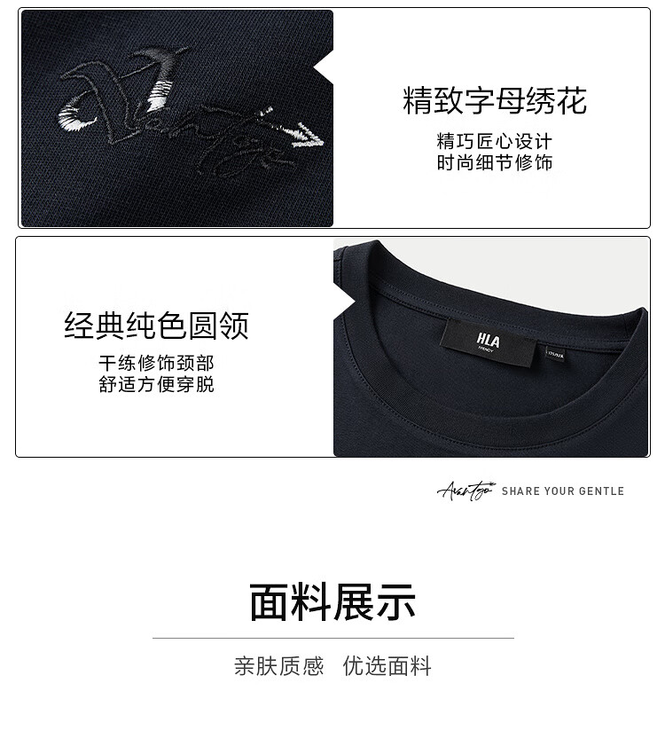 HLA海澜之家短袖T恤男24轻商务时尚系列绣花短t男夏季