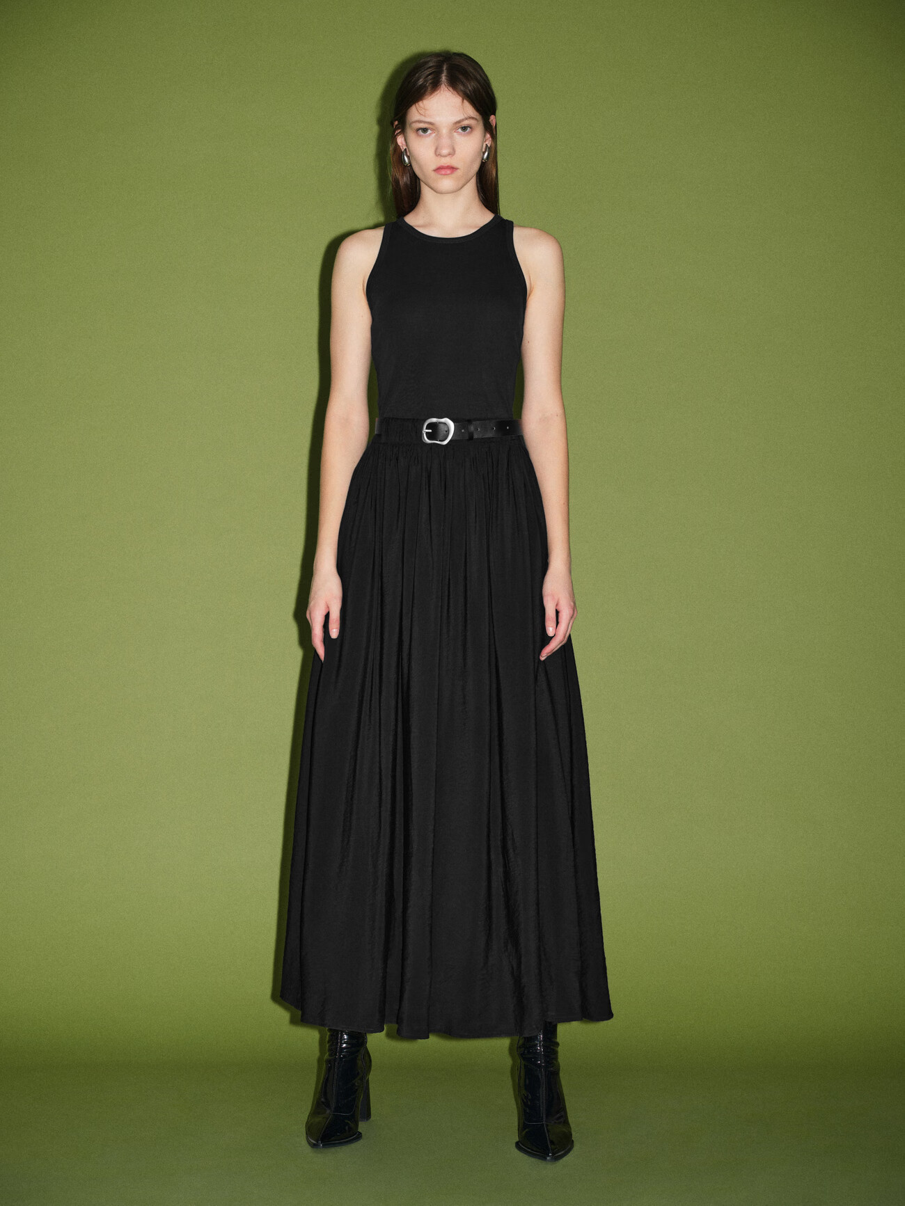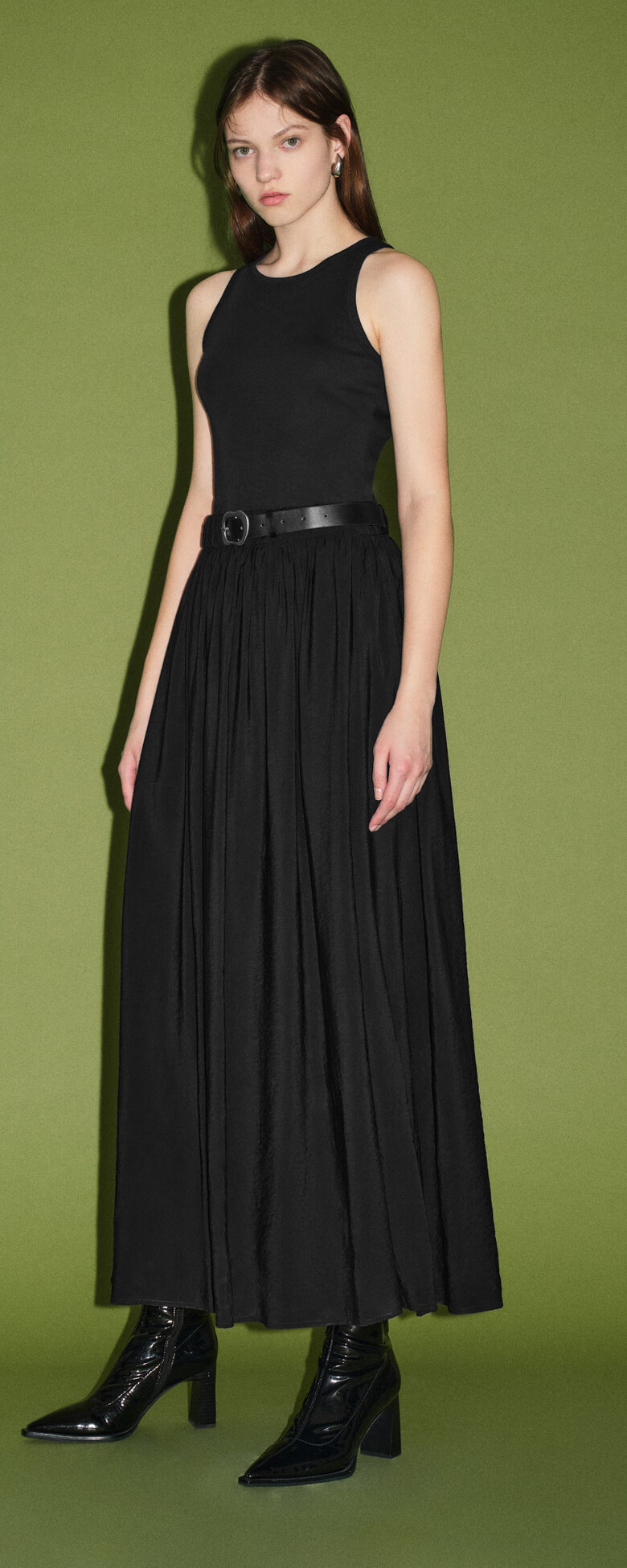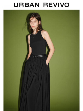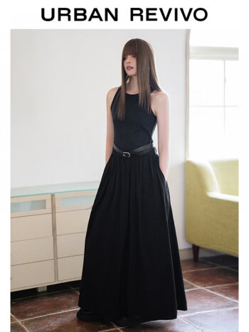 UR【钟楚曦同款】女装时髦高街拼接腰带设计感A型连衣裙UWJ740011 正黑 S