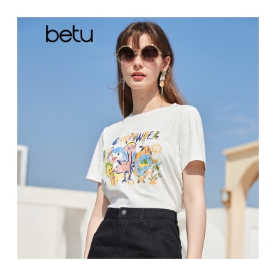 betu百图女装夏季纯棉舒适圆领短袖T恤时髦涂鸦T恤女2103T63 白色 M