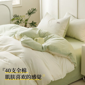 MIDO HOUSE铭都100支纯棉床上四件套四季亲肤 浅茶杏配松叶绿 1.5m床单款