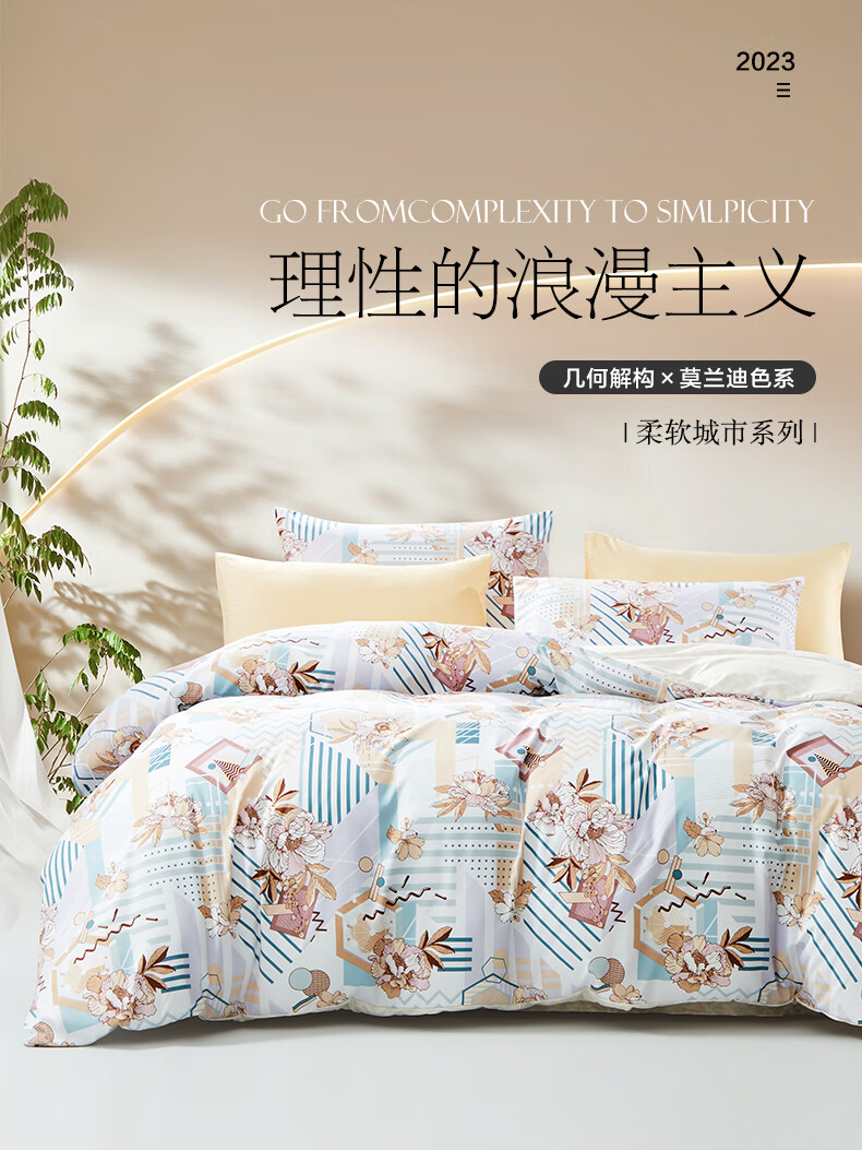 富安娜 圣之花床上四件套床单被套学生宿舍磨毛套件被罩枕套床上用品 (富安娜)锦.韶影 1.5m(5英尺)床-四件套