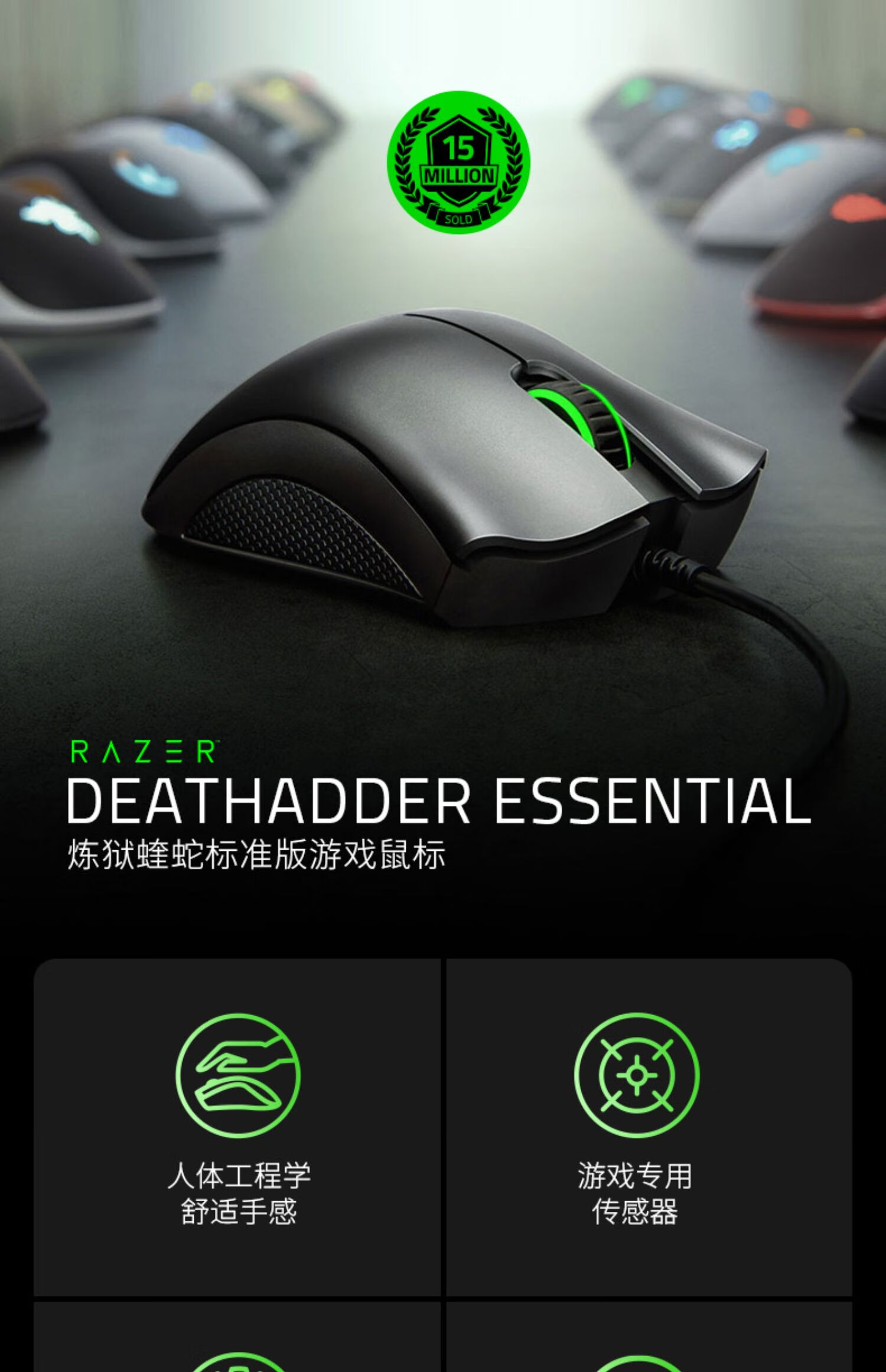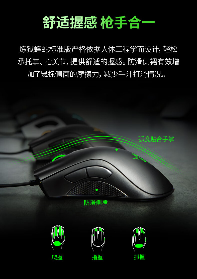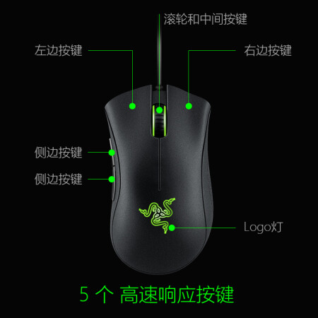 雷蛇(Razer) 炼狱蝰蛇标准版有线鼠标 人体工学 电竞游戏 右手通用型 吃鸡/LOL/CS GO游戏鼠标 黑色